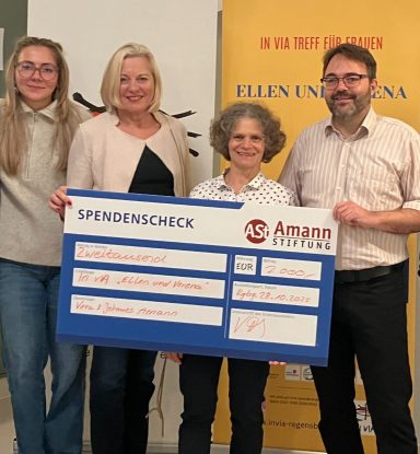 Unsere Stiftung freut sich, den IN VIA Regensburg e.V. mit einer Spende von 2.000 € bei der Umsetzung des neuen Projekts „IN VIA – Treff für Frauen“ zu unterstützen. Der seit 1902 bestehende Fachverband für Mädchen- und Frauensozialarbeit engagiert sich besonders für Frauen, die von Einsamkeit, Erwerbslosigkeit, geringen Sprachkenntnissen oder sozialen Belastungen betroffen sind.