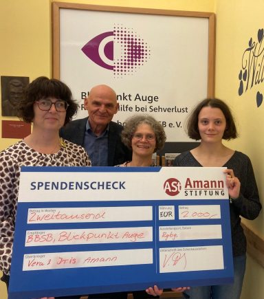 Mit einer Spende von 2.000 € unterstützt unsere Stiftung den Blinden- und Sehbehindertenbund Regensburg e.V. und dessen wichtiges Beratungs- und Unterstützungsangebot „Blickpunkt“ im Jahr 2025.